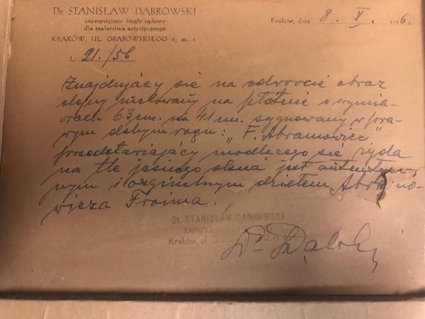 RG-14.25.01, Unknown Artist, A Rabbi Weaving the Fringe of a Tallit, 1956, back (JPEG Image, 83.75 KB)