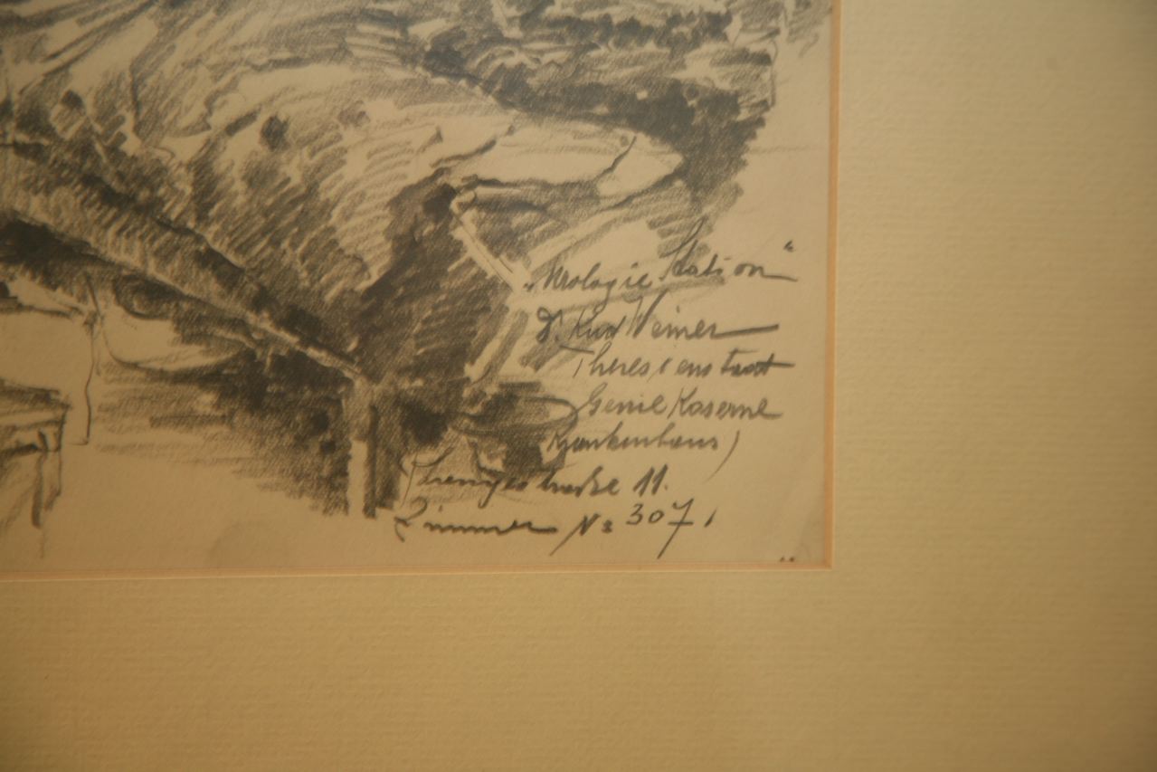 Document/Artifact of Item-Level 16: RG-04.02.16, Moritz Mueller, a hospital room, corner fragment, signed and dated, circa 1943-1944