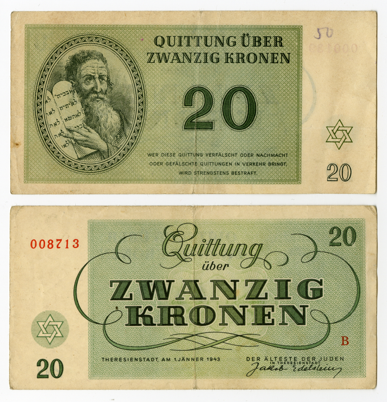 RG-06.01.04, Twenty Kronen bill, Theresienstadt Ghetto,